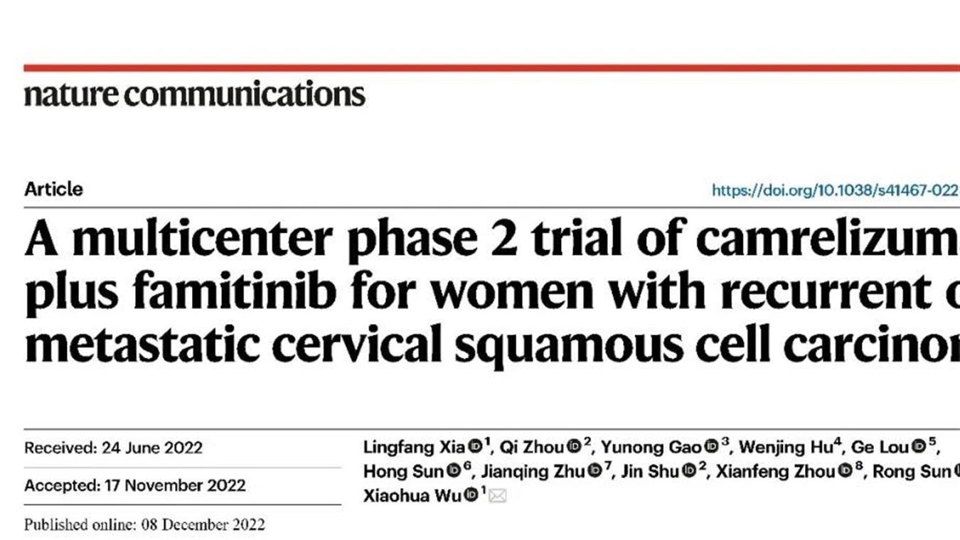 九游会创新药卡瑞利珠单抗联合法米替尼用于复发或转移性宫颈癌研究结果荣登JCO